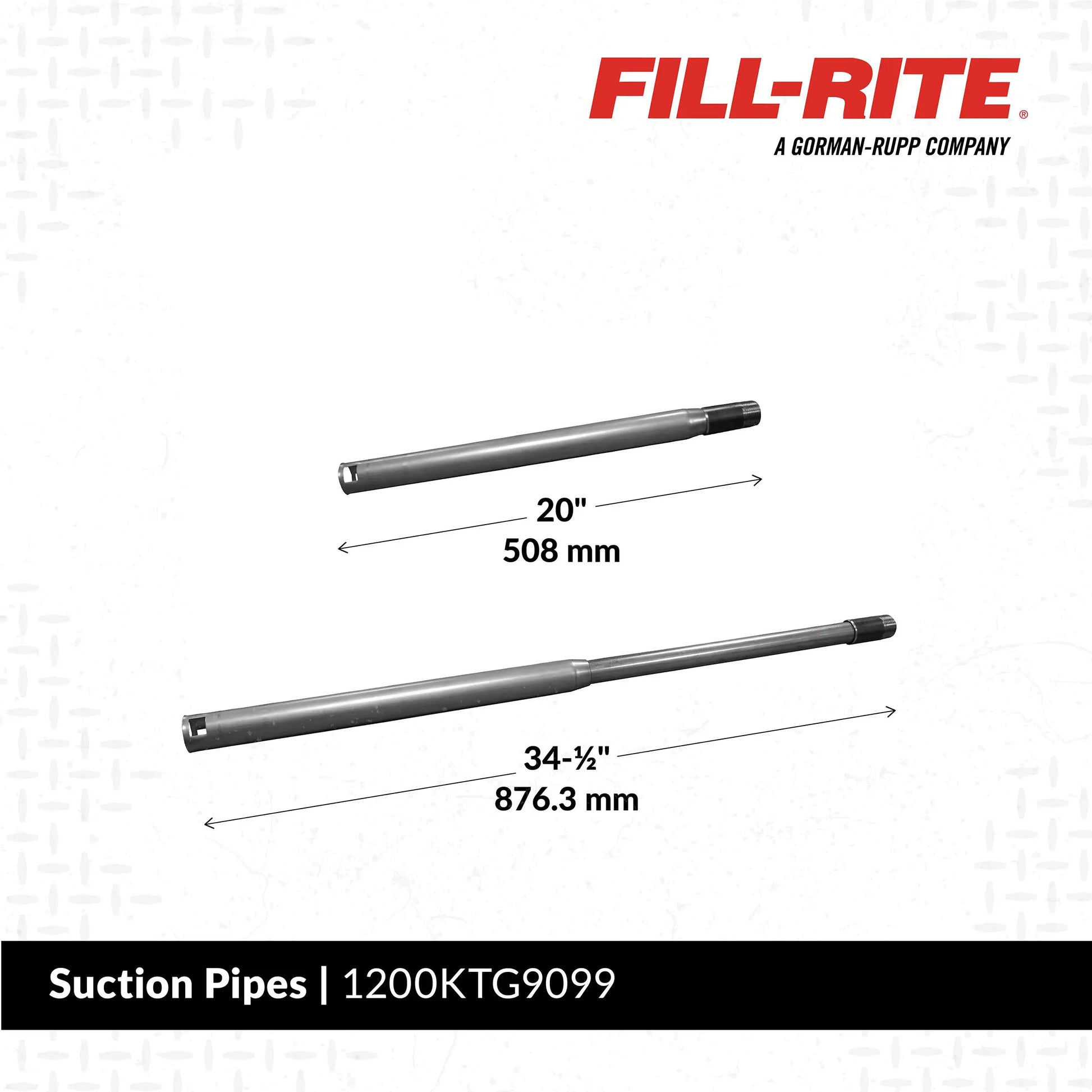Steel and Polypropylene — Fill-Rite offers both heavy-duty steel suction pipes (recommended for fuel transfer) and durable polypropylene suction pipes (recommended for chemical and industrial fluid transfer)