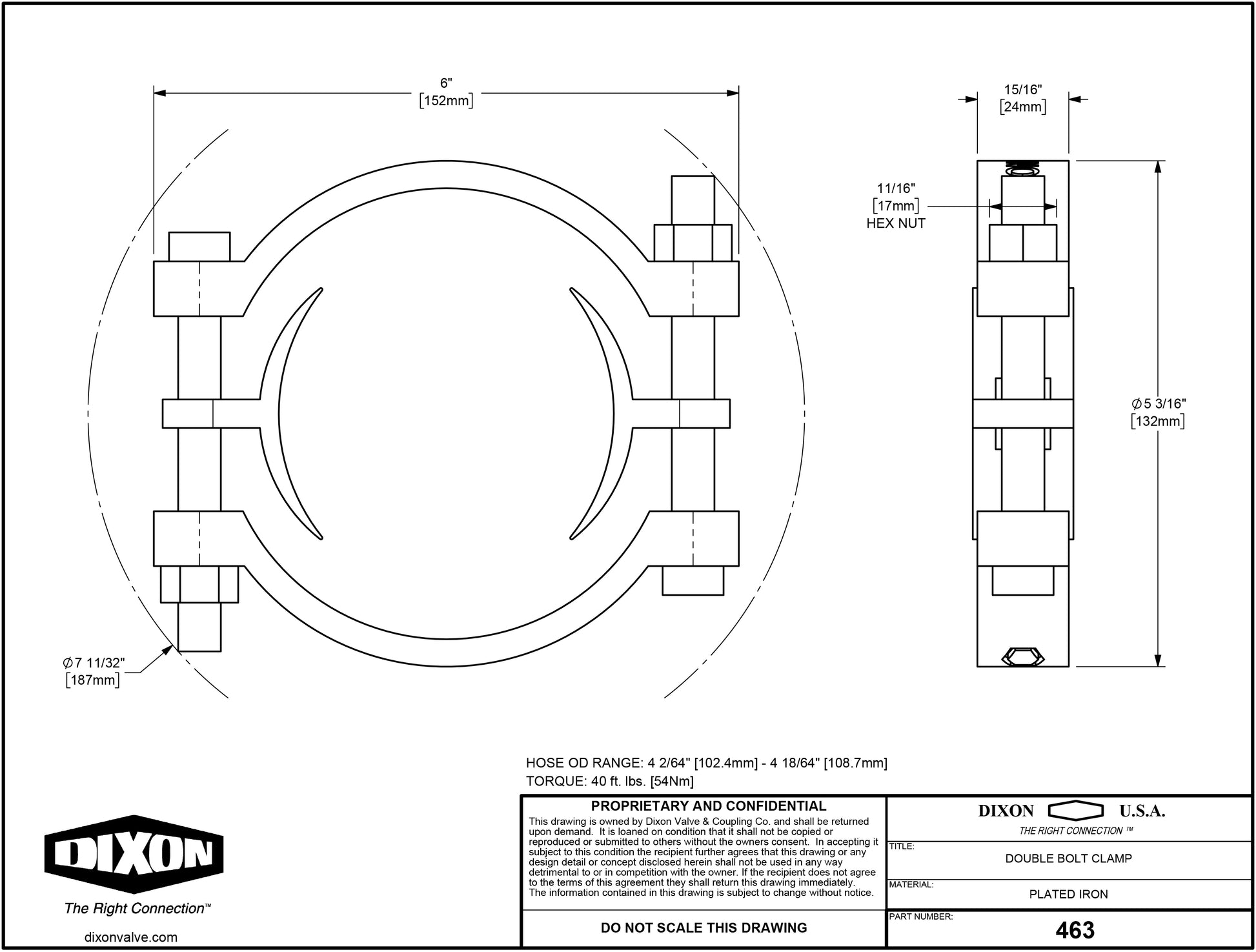 - Consult Dixon when using double bolt clamps on helical wire hose.