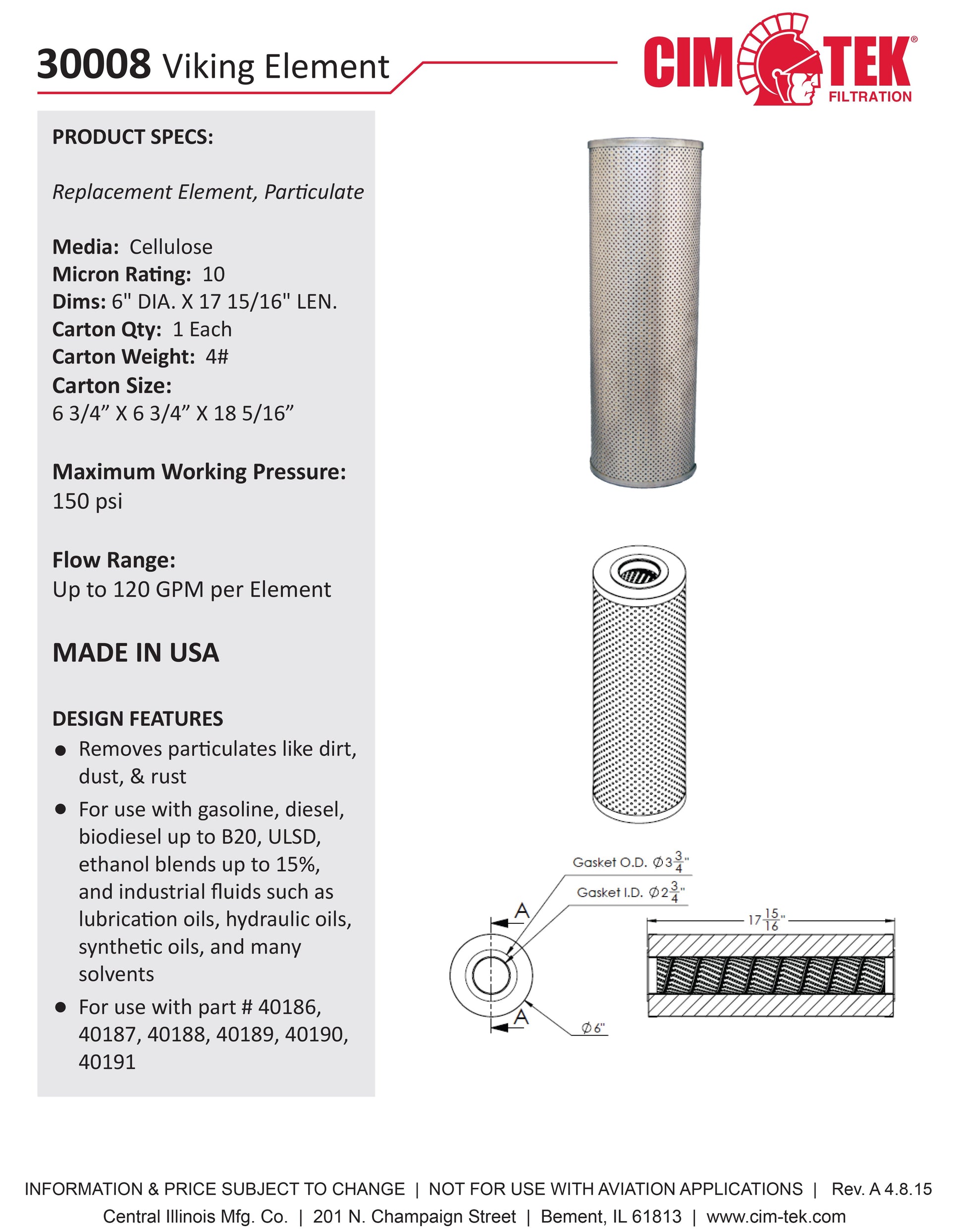- For use with gasoline, diesel, biodiesel up to B20, ULSD, ethanol blends up to 15%, and industrial fluids such as lube oils, hydraulic oils, synthetic oils, and many solvents